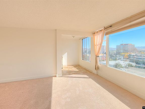#1207 is located in the heart of Downtown Reno by the Truckee River & boasts an open floor plan studio with stunning city & mountain views. The living room has high ceilings, large natural light with 180 degree views, perfect for relaxing. Spacious kitchen with a dining nook and view. Ample storage with closet and bonus storage area. Enjoy the setting sun from the rooftop terrace. This Park Tower condo is close to shops, restaurant, craft breweries, walking trails, gym and cafes.