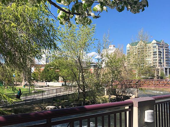This wonderful 8th floor condo has amazing Mountain View's from its open concept living area and balcony. The entire condo has just been repainted and a brand new refrigerator and stove have been installed. Floor to ceiling sliding glass doors bring in lots of light and air. Recently installed shades for the sliding glass doors work on a remote and keep the condo cool on hot days, without completely blocking the light. The bedroom has a spacious closet and the bathroom has a shower over the tub. One of the best features of this condo is its amazing downtown location. The building is just across from the Truckee River and Wingfield Park. The Riverwalk, Cinemas and outstanding restaurants are all within a very short walk. The building boasts a rooftop common area with a place to enjoy the sun and take in views of the river and downtown. This condo is in a quiet neighborhood, but just across the river from Reno's nightlife. A well maintained laundry room is on the 2nd floor. On-site property manager. 1 Year Lease Utilities Paid by Landlord include: Water, Heating and A/C Tenant is responsible for: Cable and Internet