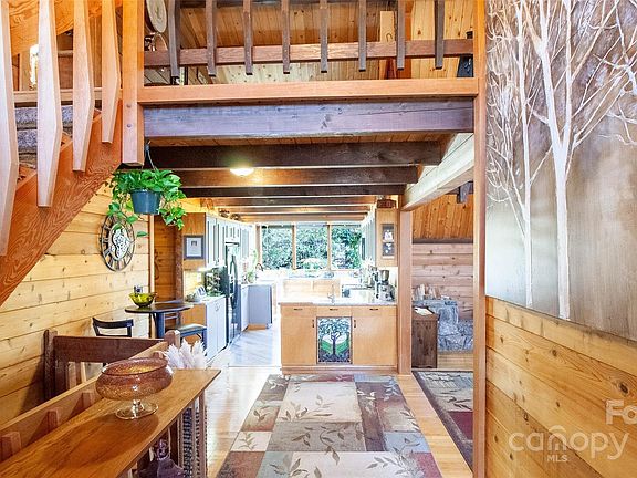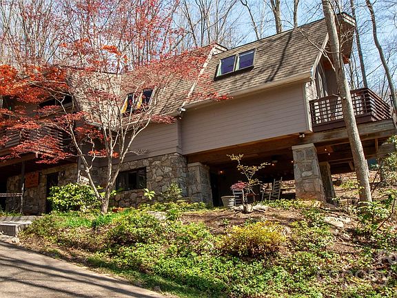 Solid Cedar Cabin in Lake Junaluska community with unique design offers three bedrooms and two full baths on main and upper levels and a short term rental unit in the finished basement. Special features are abundant in this home such as an atrium in the kitchen, quartz countertops, stain glass, a woodburning fireplace, heated floors in main and upper baths, floor to ceiling windows, a loft, large screened porch, a generator, and a new roof installed in 2018 plus more features. This property is tucked into the hillside amongst the trees and away from the bustling lake life. Nature is abundant at this property and there are many outdoor areas to relax, view and listen. This property offers a unique design and makes use of every inch of space. A complete 1 bedroom/1 full bath rental with kitchen is located in the finished basement of the property. A detached single car garage with workshop wired with 220/storage space in the top and parking for 4 cars. Call to get a showing today!