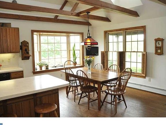 Country Comfort awaits you on this peaceful and beautiful 10+ acre property with room for horses, cows, gardens and year round fun, all within 5 minutes to Doylestown for every convience! This is so warming, inviting and comfortable, it is truly "home-sweet-home" in every way. Your own piece of paradise with Peace Valley/Lake Galena literally around the corner! The park features picknicking, hiking, boating, events and playgrounds. Your new home features large rooms, beautiful woodwork, perfect layout and room for everyone. The center hall is flanked by a large living room with hardwood floors and good sized dining room, which opens directly to the large country kitchen with beautiful exposed beams, bay window, newer double wall ovens and built in microwave, a large center island, expansive oak cabinetry, task lighting, double sink, loads of light and beautiful views. The kitchen is open to the cozy family room with built ins, wood burning fireplace featuring mercer tile, and sliding glass doors to the newer composite deck. There is a first floor bedroom/office with an adjacent private and hallway entry full bath which has handgrips in the shower. All baths have granite and newer fixtures. The large laundry room features 1/2 bath, storage and access to the two car garage. Upstairs you'll find the primary bedroom with walk in closet featuring built-ins, granite in the main bath and stunning views. Two other good sized bedrooms, one in front, one in the rear and a hall bath complete the 2nd floor. The basement is ready for finishing, has 5 Zone heat, a french drain, water softener and crawlspace. This home has been built with 2x6 construction, newer septic system, newer roof, 6 panel wood doors, and loads of charm! Preserved land behind the home gives you a long open vista. The property is beyond tranquil with a new saltwater pool, plenty of room for your garden, fencing and turn out shed for your cows ! Welcome home!