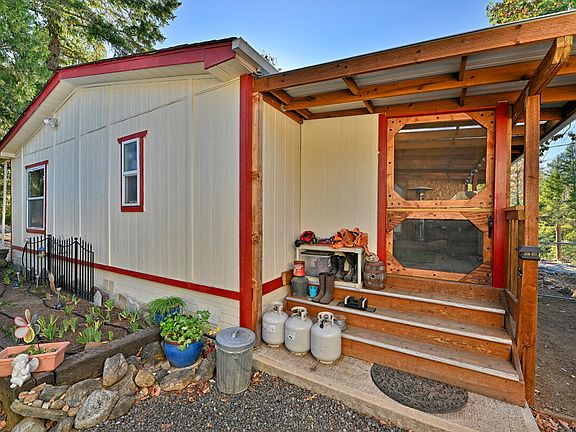 Peaceful country living on five serene acres with Jump Off Joe Creek meandering through the lower portion of the property. The home features vaulted ceilings, abundant natural light, and beautifully updated bedrooms and bathrooms that balance rustic charm with modern comfort. Enjoy a drip-irrigated garden space, greenhouse, and established apple and plum trees. The property includes a 24' x 24' heated detached garage, 12' x 21' Quonset hut, 16' x 12' shed, 8' x 6' pump house with hand pump and storage, plus a shipping container for additional utility. Plenty of room for RV parking, tools, and equipment—offering endless versatility for hobbies or projects. Tools and equipment will be removed by close of escrow. Please only approach property with a scheduled appointment.