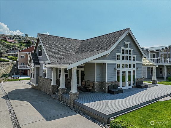Location! Location! Location! Beautiful custom Cape Cod style home in Sun Cove / Lake Entiat estates. Located on Lake Front Road just five doors down from the community club house and pool. Soaring vaulted ceilings in the large great room that flows right into the eat-in kitchen with custom cabinets, stainless steel appliances and gorgeous tile floors and counter tops. The master bedroom is located on the main level with two more bedrooms and full bathroom and extra bunk room upstairs for guests! Grand deck and outdoor bbq area just a stone’s throw from the wf and amenities you love in Sun Cove!