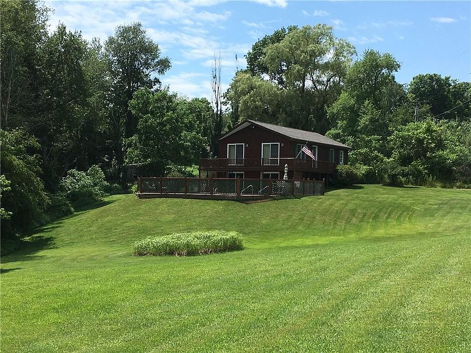 Wonderfully located and well-maintained 4-bedroom, 2-bath with spacious 3-car garage and low-maintenance in-ground pool on 2 acres. Light and bright kitchen/dining, large living room w/ sliding doors leading to wrap around deck. 2 bedrooms, 1 bath on each floor. Lower level family room and bonus kitchen are perfect for pool side entertaining. Borders 117 acres of public forest and meadow. Stroll out your backyard to Dryden Lake to enjoy hiking, fishing, and kayaking. Convenient commutes to Cornell, Ithaca and Cortland. Just minutes to shopping in Dryden.