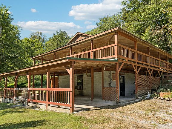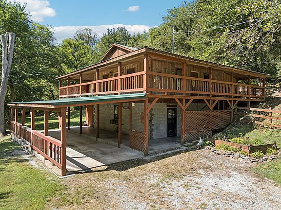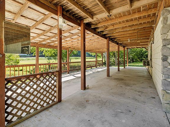 The home features a wrap-around covered porch on the main level—perfect for relaxing and enjoying the views. Inside, you’ll find hardwood floors throughout, adding warmth and charm. A covered carport and a detached workshop with lean-to sheds on each side provide excellent storage and workspace.