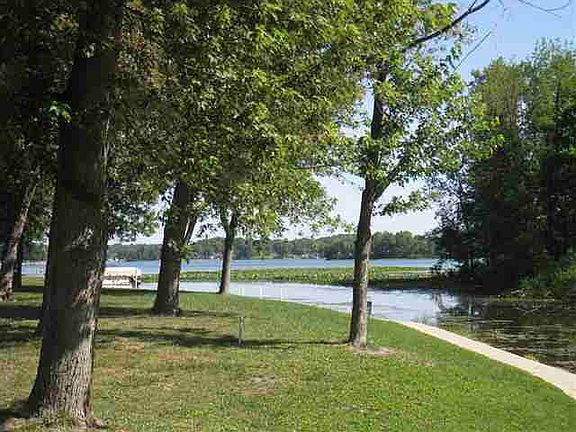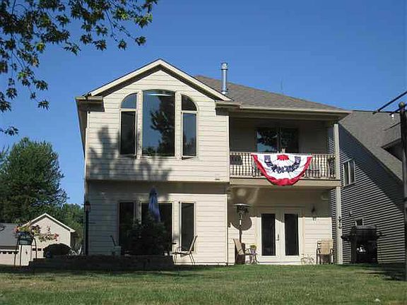 Enjoy all-sports lake living & beautiful water views plus the park-like setting of Schuhler's Landing including a fishing pond, quiet neighborhood & children's play/picnic area! The back lot includes a 1176 sq.ft. two-story detached garage perfect for storage space. Outstanding throughout, a lovely foyer greets you with open staircase. The spacious great room features cherry hardwood flooring, built-in bookshelves/entertainment center & a dual-sided gas fireplace which opens to the dining room. Custom maple cabinetry, a curved breakfast bar, and a walk-in pantry adorn the kitchen. The cathedral ceiling master suite features a wall of windows for lovely views plus a private balcony. The master bath offers dual vanities, a walk-in closet with organizers, shower, jetted tub & glass block surround for natural light & privacy. The 4th bedroom above above the attached garage could easily sleep several guests or serve as a rec/bonus room. Custom features include home security system, home & p