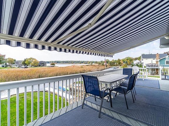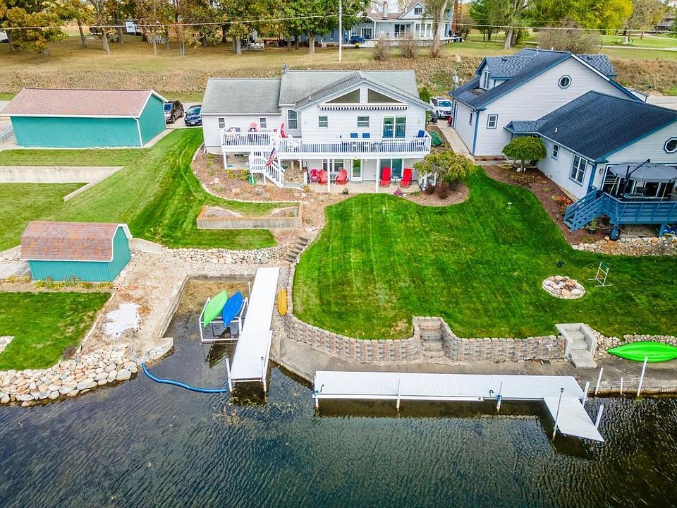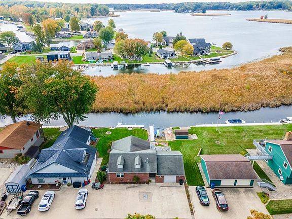 Sweet spot on Snow Lake! 60' of channel front and spectacular sunset views! Piers are included and stay in the water year round. Open concept living room, kitchen and dining area allows access to the lakeside deck with awning. The living room features surround sound, a gas log fireplace, sliding door to the deck, cathedral ceiling, foyer entry and half bath. Kitchen with a breakfast bar, newer appliances, tile flooring, a pantry cabinet and easy access to the deck for grilling. Main level primary suite provides a double sink vanity and walk-in closet with organizers and built in drawers. The lower level family room boasts access to the covered lakeside patio, a wet bar and the beverage refrigerator is included. Two guest bedrooms, a full bathroom and a laundry/utility room complete the walkout basement. The oversized attached garage has built in storage, extra refrigerator and a workshop area. All appliances, water softener, and bar stools from both levels are included. This home was complete rebuilt in 2001 except for the garage floor slab. New furnace and AC installed in 2020. New water heater and water softener installed more recently. New connection for Steuben Regional Waste is coming next spring. The only cost the buyer will be responsible for is the electrical connection. Easy access to I-69 and the Toll Road. Conveniently close to shopping and restaurants.