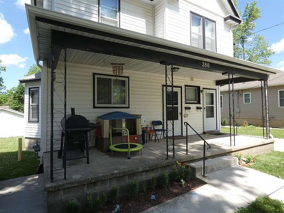 Two flat rental home with long history of full occupancy. Owner has done all necessary maintenance along the way and property is turn-key. Main level and upstairs each have two bedrooms, living room, eat-in kitchen. All appliances are owned by seller. Basement is shared area with a set of laundry machines for each tenant. Owner pays all utilities except main level electricity is paid by tenant. If you are looking for low cost living for yourself, choose one unit to live in and rent from other unit will cover the mortgage. There's an old garage in back corner of lot works well for yard shed and toys. Nice backyard and a neighborhood city park is a few steps away. Schedule your showing for a closer look at this opportunity today.
