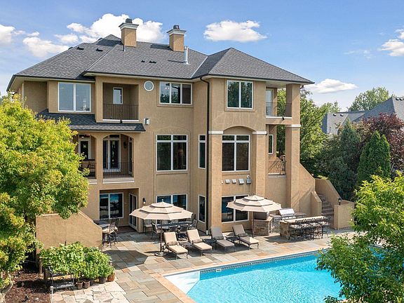 Welcome to this Elegant Custom Two-Story 5 Bedroom 5 Bath Home in Wild Meadows of Medina. As you enter by the Soothing Front Fountain onto the Grand Front Porch this beautiful home is truly made for both entertaining and everyday living. The Main Floor features include Natural Alder Woodwork, Great Room and Sitting Room with See Through Fireplace, Dining Room, Home Office w/Brazilian Walnut Floors and Butler's Pantry/Bar. Enjoy the Gourmet Chef's kitchen with a Wood Stone Brick Oven, 60" Double Oven Wolf Range, Sub-Zero Refrigerator, Granite Etched Sink, Large Center Island with Vegetable Sink, and Breakfast Bar. Upper level 4 Bedrooms and Large Bonus Room, Private Primary EnSuite with Fireplace, Sitting Area, Walk-in Closet, and Outdoor Deck. The Walkout Lower Level includes a Large Family Room, Theatre Room, and 1200 Bottle Wine Cellar. Entertain or just relax in your Backyard Oasis that includes a 40' Pool with Spacious Blue Stone Decking, Outdoor Bar and Kitchen.