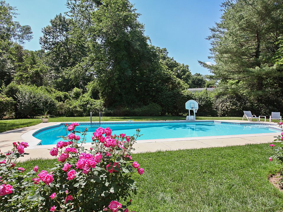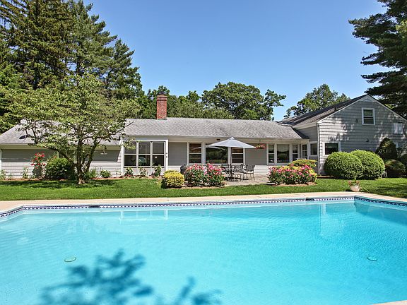 Easy living in this sun-filled, expanded Ranch with a heated Gunite pool, beautifully situated on a level, landscaped .55 acre in Heathcote. A master bedroom with a renovated bath plus two more bedrooms and renovated hall bath are on the first level. The renovated kitchen with new window, honed marble counter tops and porcelain tile floor has a door leading to the large patio and pool. The spacious living room with a fireplace and new Pella picture window overlooks the private, fully fenced back yard. A charming sunroom opens to the yard, attached two-car garage and laundry/utility room. The formal dining room overlooks the lushly landscaped back yard. The second floor features a large bedroom, family room/playroom and a hall bath. Conveniently located near commuter bus stop, elementary and middle schools, houses of worship, playing fields and town pool. Hardwood floors throughout, new windows in lower level baths, kitchen and living room.