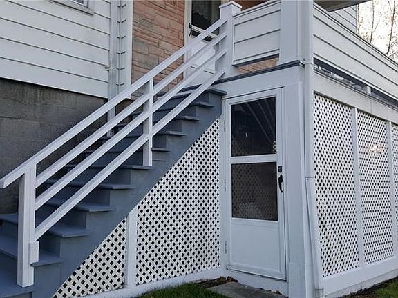 Move in condition. Featuring a front & rear covered porch, living room and separate dining room, cozy kitchen with oak cabinets double sink, range and dishwasher. First floor laundry room with a convenient powder room. Upstairs are two bedrooms, plus a bonus room for your special use. The full bath is large with a new bath tub and surround. Double pane windows throughout. There is an attic and basement for storage, plus outside storage under the rear porch. Nice size sloping corner lot and off street parking. Home Warranty.