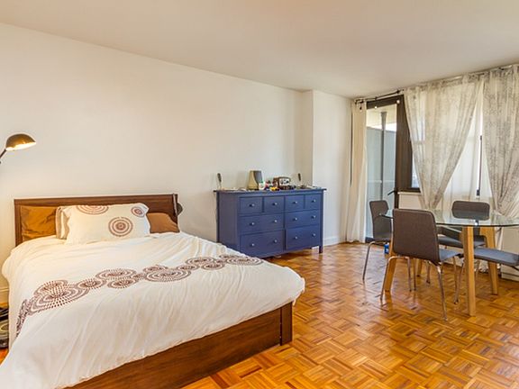 Don't miss your opportunity to rent this large studio in a prime location, directly across from the Grove St. PATH station with views of New York City and the Hudson River. Perfect for commuters into NYC. This apartment has a recently renovated kitchen and bathroom, central air, tons of storage space, hardwood floors throughout, and a huge balcony. Amenities offered are 24-hr doorman, elevator, fitness area, and laundry on-site. Heat, hot water, gas, and electric are all included in this amazing rent price! Parking is also available for rent on-site! A