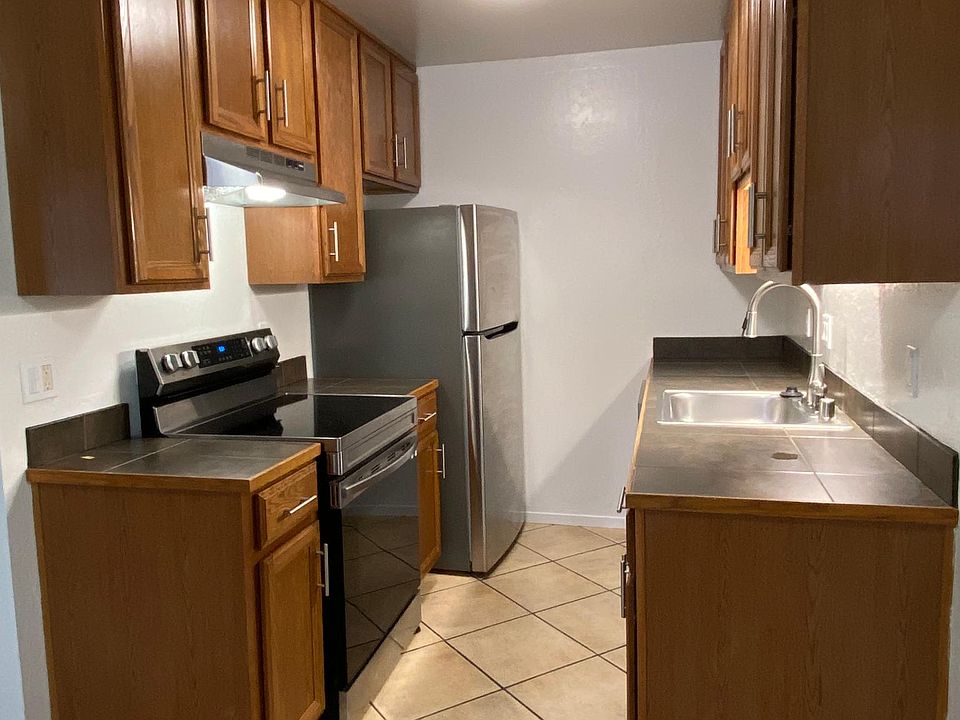 1br/1ba, 585 sf, upstairs end unit, tile flooring throughout, AC, updated appliances/kitchen, and yard. Rent includes- Water/Hot Water/Garbage/Parking x1/Storagex1 Amenities- Pool and Laundry on site 6-10 month Lease term available (Tenants choice). After the initial term has ended the Lease continues month-to-month. You are welcome to sign onto an additional term of your choice at that time.