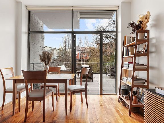 Residence 2B is a 681 square foot south-facing 1 bedroom with a 572 sq ft private terrace, covered parking and private storage. Floor to ceiling windows, stunning interiors by Garrison architects and approximately 10 foot ceilings define this loft-like condominium nestled in the absolute heart of Williamsburg.