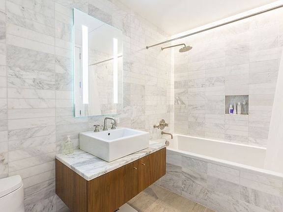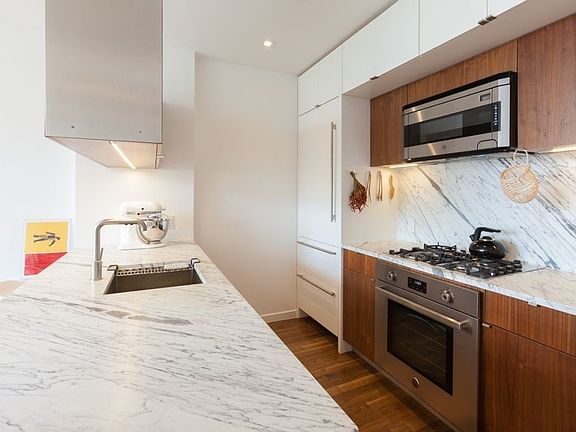 Situated on the fourth floor of Williamsburg's premier boutique condominium 280 Metropolitan, Apartment 4F is a thoughtfully designed one-bedroom with standout finishes and breathtaking natural light flooding through floor to ceiling windows. The building is in the heart of Williamsburg, conveniently positioned near the Bedford L, Marcy Avenue J, M, Z, and Metropolitan G trains. Whole Foods Market, Equinox gym, and the Apple Store are all just blocks away. Apartment features - * One bedroom * One bath * Spacious living and dining area * Floor to ceiling windows * Walnut hardwood floors * Washer and dryer * Central heating and air conditioning Kitchen features - * Sub-Zero refrigerator * Bertazzoni and Bosch stainless steel appliance including dishwasher and microwave * Bianco statuario countertops Bathroom features - * 6' Zuma soaking tub * Rainfall shower * Marble and Italian porcelain tile * Floor warming Building amenities - * Furnished rooftop resident terrace with a gas grill and Manhattan views * Landscaped resident courtyard * Fitness center * Bike storage * Smartphone based video intercom system * Package and grocery delivery room Neighborhood features - * Surrounded by the neighborhood's best restaurants, bars and cafes, including Roebling Tea Room, Juliette, Radegast Beer Hall, Oslo Coffee Roasters, Sweetgreen, Clems, Momofuku Milk Bar, DuMont Burger, By Chloe, Pies-n-Thighs * Other neighborhood highlights include Whole Foods, the Apple Store, Equinox Gym, Williamsburg Cinema, and Bedford Cheese Shop * Transporation: Bedford L, Marcy Avenue J, M, Z, and Metropolitan G trains