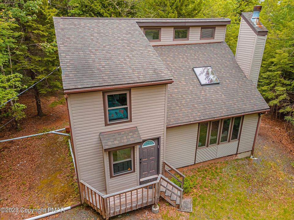***JUST REDUCED!*** Looking for privacy? It's the property for you! With 2.52 Acre you will only have nature as your neighbor! This lovely, bright, fully furnished contemporary home is going to amaze you with its location as well as its design. House features a large living room with a brick faced wood burning fireplace and high ceilings with skylights that make it very bright. The open concept of the first floor allows everyone to enjoy their presence whether they are preparing food, working or relaxing. The main bedroom is right next to the kitchen and the other two bedrooms and the loft are located upstairs. The house has new floors throughout. The screened porch brings everyone even closer to the beauty of nature. Located in The Estates at Emerald Lakes with many amenities, such as indoor and outdoor swimming pools, numerous lakes and beaches, recreation center and more. It is a true heart of the beautiful Pocono Mountains, close to all of the great attractions of the area. Low taxes! STR friendly community!