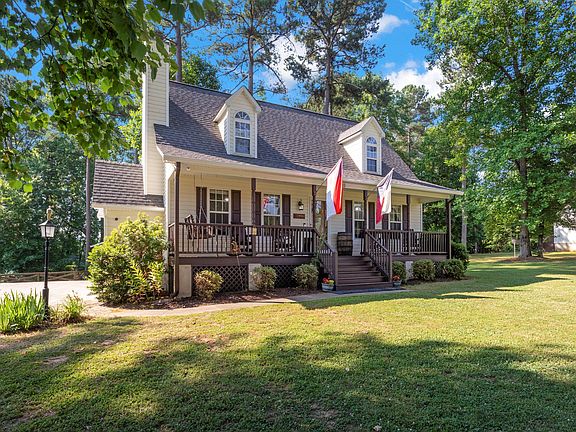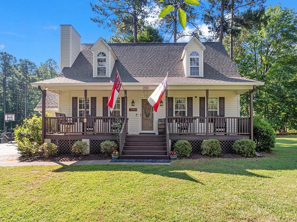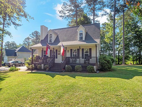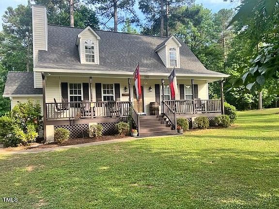Charming Cape Cod with rocking chair front porch sitting on an acre lot towards the end of a cul-de-sac. Cozy and bright living room with fireplace. Nice size eat in kitchen with French doors that lead out to the spacious double back deck & patio. On the main level there are two bedrooms along with full bathroom and laundry. Upstairs is a large bedroom with vaulted ceilings and tons of natural light, full bathroom and additional room to use as you choose. In addition to the large flat back yard sits a carport and large storage shed with electricity. Roof 12/21, HVAC 10/18 and h20 heater 8/19. Fresh paint in kitchen, living room, hallway and entire upstairs. No HOA. Easy access to US 1. Minutes to downtown Franklinton, 15 miles to downtown Wake Forest.