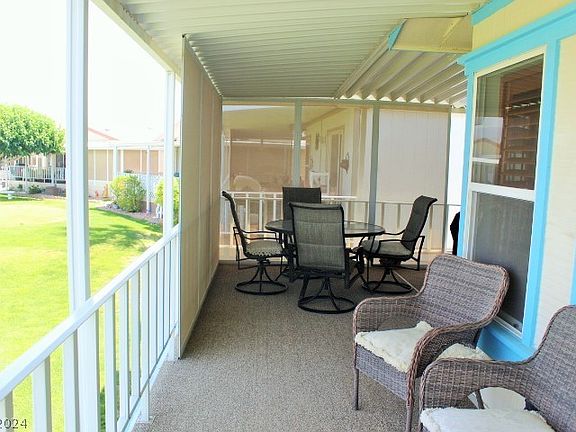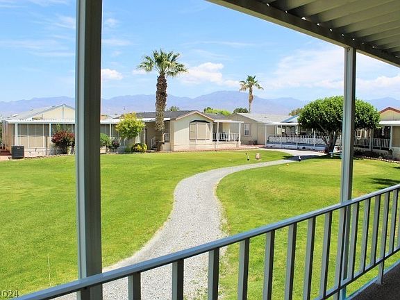 Beautifully cared for HALLMARK HOME that offers more upgrades-- OPEN LIVING/DINING/KITCHEN--Granite Ctrs & SS APPLIANCES --PLANTATION SHUTTERS --Gorgeous PERGO WOOD FLOORING main areas--Large Covered Deck with Privacy Screening for Dining--Great size OFFICE/DEN (could be formal Dining or 3rd Bedrm) -- Spacious Primary Suite, 2nd Bed and Bath, Sep. Laundry Rm, newer water htr, A/C Heat pump, Storage Shed, Golf Cart Parking Pad & Covered 2 Car Carport. Come Enjoy this Great Resort Lifestyle in central area of Pahrump close to Shopping/Dining/Medical, Featuring a Gorgeous 6000 sf Clubhouse with many social activities including Golf Course, Pool, Spa, Library, Exercise Rm, Meeting Rm, Games & Get-togethers. Call Today - these homes do go fast!