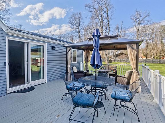 OFFER DEADLINE 4/29/24 BY 6:00 P.M. LITTLE HOUSE LIVING LARGE!!! This previously 2 bedroom home has been transformed into a wonderful retreat for singles, couples, snowbirds, etc. Set on nearly an acre, plenty of room to add an addition (think primary BR with en suite!), and luxury homes nearby will support the added value. Spacious kitchen with plentiful cabinets and a nice coffee bar, tile backsplash and newer appliances. LR with gas fireplace opens to dining room and front entry area. Bedroom easily accomodates a king sized bed and has a great custom closet and adjacent laundry. Within the last four years - new siding, windows, on demand heat and hot water, front porch, and remodeled bath. Expansive deck off kitchen overlooking the yard; 12 x 24 garage sits on the rear of the property, as well as a very large shed with electricity. Super energy efficient with solar panels and a Tesla battery back-up. COME FALL IN LOVE WITH THIS PLACE!