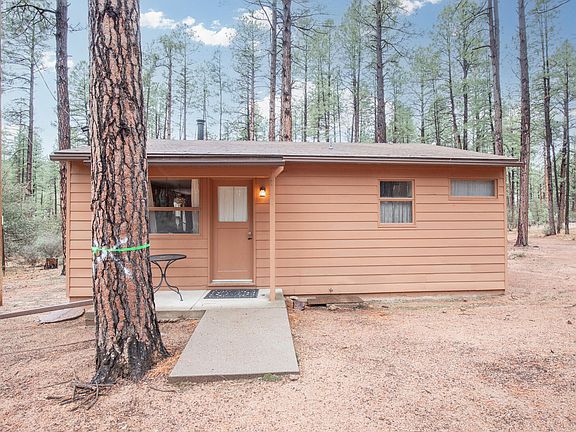 Discover this charming 2-bedroom, 2-bath cabin nestled on a full acre of towering pines, offering the perfect blend of tranquility and rustic charm. With a price that's hard to beat, this cozy retreat features hardwood floors, a cozy wood-burning stove, and the comfort of air conditioning. Don't miss out—this one is a must-see! Please note, the seller will make no repairs.