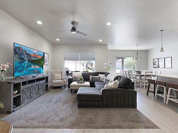Fully furnished short-term rental! This beautifully maintained, turn-key property is perfectly located near Southern Utah's most popular destinations, including Zion National Park, Sand Hollow, Quail Creek, and the Sand Dunes. This spacious and highly upgraded end unit offers 6 bedrooms, including 3 primary suites, and 6 bathrooms, along with two laundry rooms,