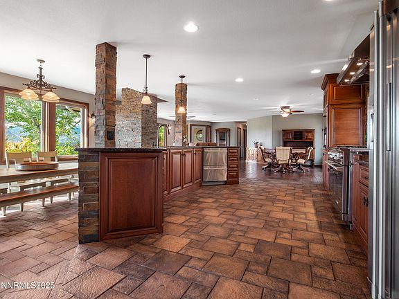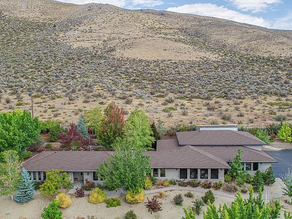 Here is the ultimate setup of a home for this one-of-a-kind property that offers privacy, views, garage space and stunning upgrades. This gorgeous house sits on over 1 acre, backing to BLM land with expansive south-facing mountain views. Car enthusiasts and hobbyists will love the massive 1,932 sq. ft. attached garage with three bays and a deep RV garage and workshop area with 10k in custom cabinetry. As you walk into the house you immediately notice the attention to detail, design and custom finishes that showcase every inch of this home. Fall in love with the completely remodeled kitchen that opens to the great room and is truly a chef's dream. Highlights include an Electrolux 6-burner range with oversized hood, double oven, built-in Thermador espresso maker and Miele steamer, double-drawer dishwasher, wine bar, and extra storage pantry. Gather around the real Wood-burning fireplace with its striking ledger stone surround for cozy evenings, 7.1 surround sound speakers, interior glass doors and so much more! The grounds have been meticulously cared for and feature 200 mature trees, 15 fruit trees, a greenhouse, and lush landscaping that creates a private retreat. Outdoor living shines with a 552 sq. ft. covered patio complete with a built-in BBQ, TV, all finished and enclosed bringing the outside in— and absolute hit, perfect for entertaining! This property is such a rare offering that balances modern luxury, functionality, and outdoor living in one magnificent package. Furnishings are lovely and negotiable. *******Please read private remarks prior to submitting offers. ********