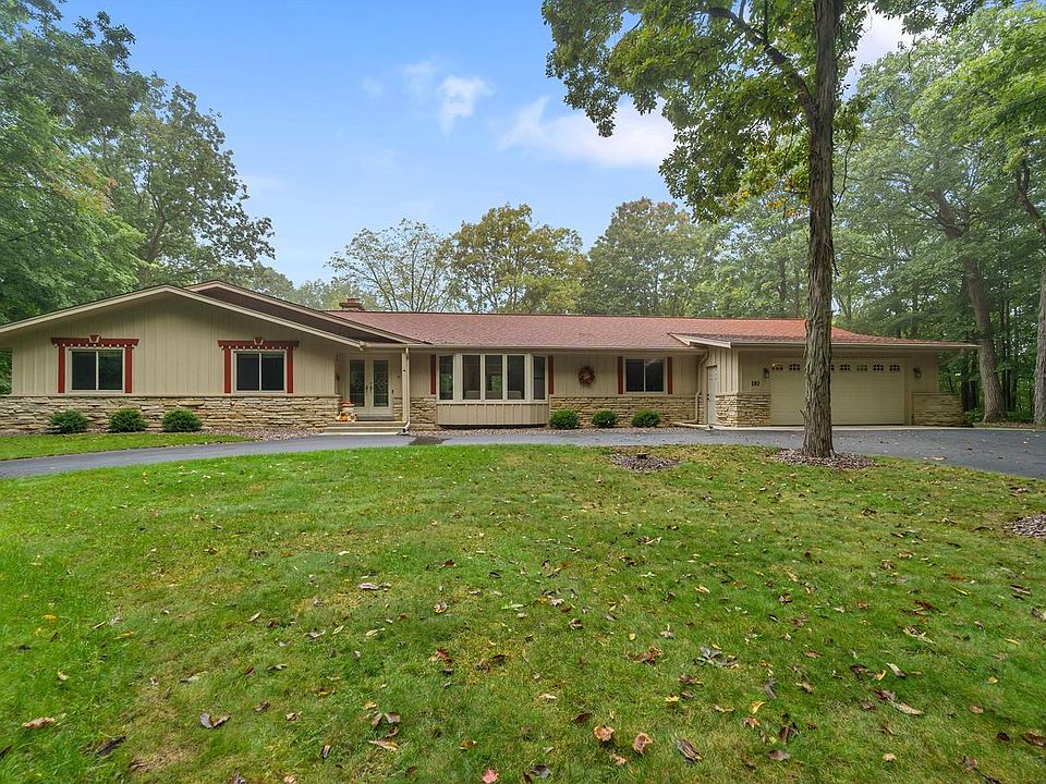 Upon entering the driveway of this split bedroom Ranch home, you will be in awe of this stunning, one-of-a-kind, home, situated on 4 wooded Acres. Once inside you will be delighted by the openness of this amazing home that features incredible views from the many windows. The meticulously maintained home boasts a Formal Dining Room, Main Floor Laundry, Living Room, Family Room which boasts a natural Fireplace, generous sized kitchen with newer SS appliances & a dinette The primary bedroom Suite has been recently remodeled & includes a Primary bath with a soaking tub, & a separate tiled shower. The remaining bedrooms are spacious & there is a full bath to accommodate your guests as well.This home has been well maintained & boasts many updates.You will not find another as well maintained