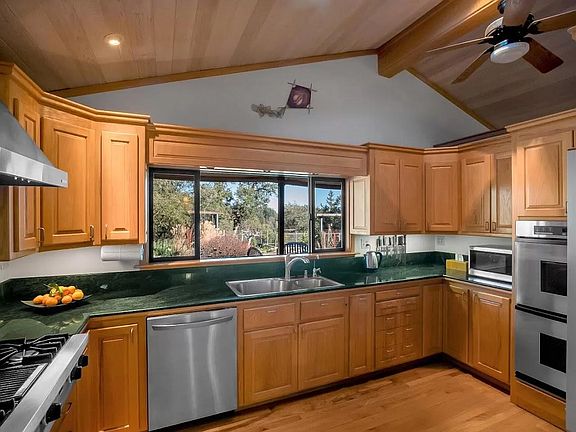Welcome to Craftsman architecture's ageless appeal, historic flair, and contemporary comfort with traditional touches like wood floors, stone living room fireplace with rare Jotul cast iron insert, and shady covered porches. One of the most desirable mountain communities. The grounds are well-kept, with stone walks and breathtaking mountain and Monterey Bay vistas. Arroyo Craftsman sconces and lanterns, vaulted ceilings, and picture windows in the Master Bedroom and Living Room let warm sunlight to flood in during the winter. Spacious kitchen with top-of-the-line stainless steel equipment, a Viking grill top, a Dacor oven, a Subzero refrigerator, plenty of counter and cupboard space, and stunning views of the garden and dawn.A professional woodworking shop The size of the room is 20' x 28' long. Downtown Los Gatos is about 8 miles away! Mountain vineyards and hiking are nearby; Castle Rock State Park is 3.8 miles away, and SJ Airport is 20 miles away. To avoid a commute, use Skyline Blvd to various regions of Silicon Valley. PLEASE NOTE: Rent is 2800 with all utilities including electricity; Rent is 2600 with only water, trash and gas included so you decide.