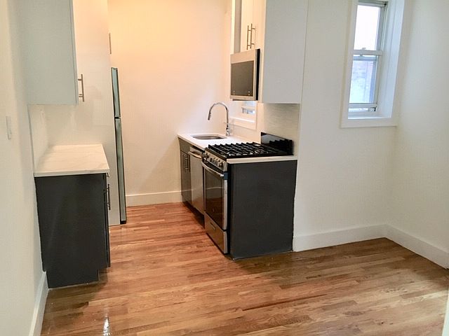 Beautiful large studio, use as one bedroom with the addition of bookcase screen. Over-sized flyer, Which adds to the living room via a large arch. Walk-in closet, built-in bookcase. The living room is ample with a closet on the back wall, It was meant to be more than your average studio. There is also a nice big separate eat-in kitchen with 2 windows. This apartment has been renovated top to bottom with no expense spared. New windowed kitchen with granite countertops stainless steel appliances including dishwasher. Same with the bathroom the renovation is just spectacular, best you will see. Elevator building with Laundry & live-in super, close to shops & F & G Subway. not far to the B/Q, this home is close to all that Kensington has to offer: 10 minutes to incredible Prospect Park, bike and follow the path along Ocean Parkway (America's oldest bikeway) to amazing Coney Island; sample the many new restaurants and cafes nearby, including Der Pioneer, Wheated, Hamilton's, Brancaccio's, Parade Cafe, Steeplechase Coffee, La Loba, and Thai Farm Kitchen to name a few. Sorry no dogs allowed.