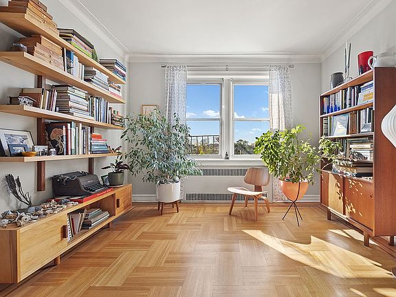 Perched high in the sky, this co-op is situated within a beautiful pre-war elevator building with 113 units, with gorgeous grounds and excellent financials. This well maintained building has a live-in super, a laundry room, additional storage, bike storage; and offers close proximity to the F, G, and Q subway lines and multiple bus lines, including express bus service into Manhattan. It's near all. It's a 10-15 minute walk to Prospect Park and it's close to eateries such as the Thai Farm Kitchen, Wheated, Der Pioneer, Werkstatt, Steeplechase Cafe, Hamilton's and much more. Come take a look and fall in love. Cats are welcome, no dogs please.