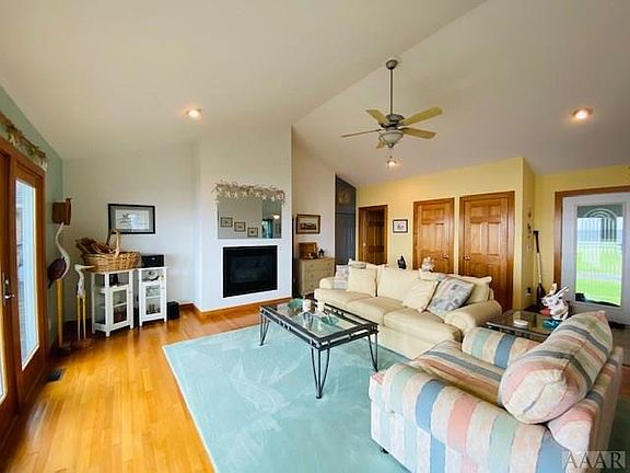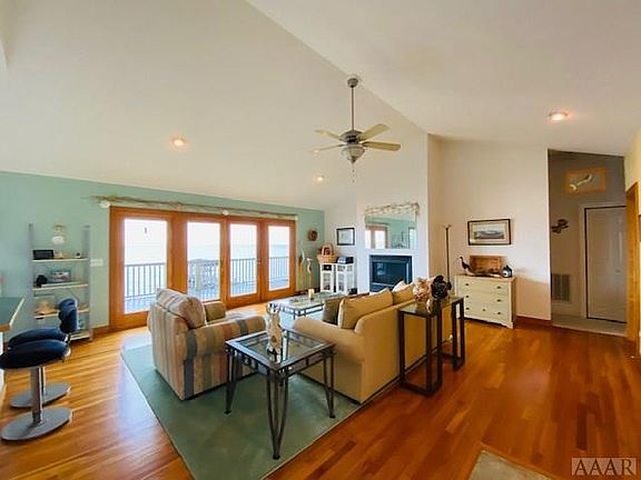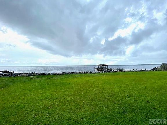 Life on "Old Beach House Road"...Enjoy the "open" floorplan, kitchen w dining bar & adjoining dining room. Expansive views of the Albemarle Sound and just a few steps to your private pier & covered boat lift. Home features two spacious living areas, covered porches & open deck, 3 bedrooms, 3 bathrooms, double garage & workshop. Some of your best times may be on the elevated decks dolphin watching! Having a get together? Enjoy all of the space under the house. Great for cook outs, extra outdoor living area. Good fishing year round. Old Beach House Rd is a 45' private road. No HOA established.