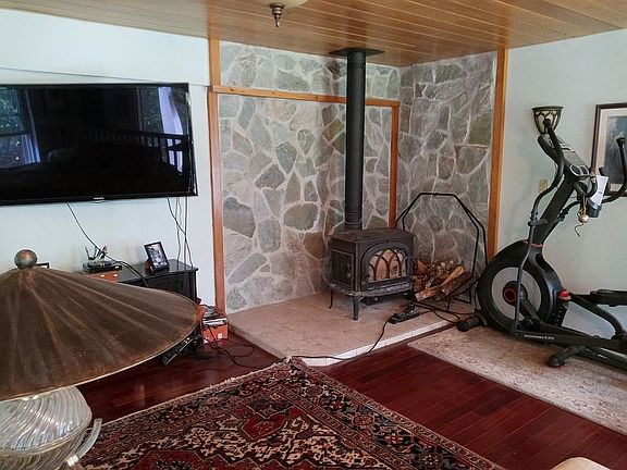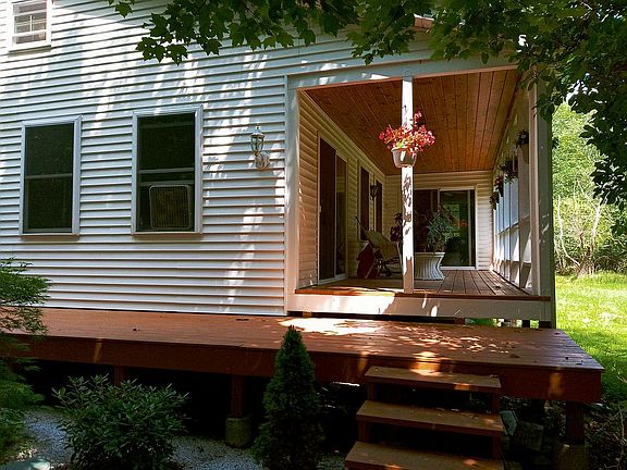 Very private single floor farmhouse on 38 well landscaped acres, cypress or cedar ceilings, vinyl siding, many windows, 2 covered porches and a deck. Very large attic (1000 SQ ft and windows). Propane heat and 2 large wood stoves. Two separate garages. Lots of deer and other wildlife. Sits far back from road. Has good internet connection ( Verizon FiOS).
