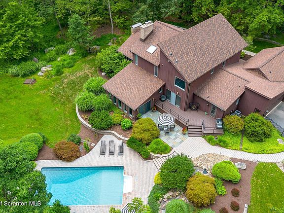 Architecturally distinct contemporary provides privacy with a backyard oasis on 2+ acres at the end of a cul-de-sac in Bulford Farms! This beautifully designed 2 story offers 4 beds, 5 baths, open floor plan, vaulted ceilings, walls of windows, luxury kitchen & baths, and a master suite with fireplace. Enjoy a pristine pool, water feature, fenced yard, lush landscaping, and expansive deck & patio. Don't miss this rare opportunity to own a one-of-a-kind Shavertown home!