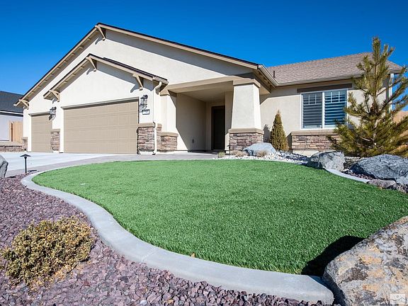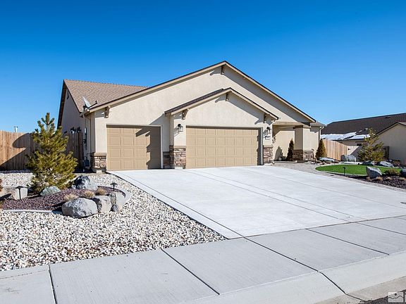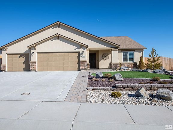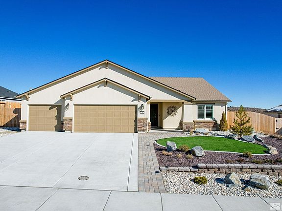 Have you been looking to live in the Copper Canyon neighborhood here in Dayton? You want a new home and a view, but you don’t want to wait for it? Then this home is perfect for you! Not only does it have amazing views of the mountains, the thought the owner put into the upgrades where exquisitely done. Original owner has maintained this home to perfection. As you pull up you will start to see the pride the owner has, as you have a beautiful front yard with custom landscaping. If that doesn’t set the perfect, tone, then as you enter you’’ll see it in the large entry wide hallways. This home has custom paint that highlights the features of each room, and we’re just getting started. It also has upgraded luxury vinyl plank flooring throughout the main areas of the home. The bedrooms have upgraded pad and carpet. Each room has had the light fixtures upgraded to match the theme of the home. You don’t need to worry about buying blinds either. This home already has custom blinds and shutters in each room. Even the sliders have upgraded blinds that with the push of a button can go up or down for your convenience. Now let’s take a minute to talk about the kitchen! With its beautiful white cabinets that have custom built in pullouts, beautiful granite, stainless steel appliances, a pantry, plus an extra large island perfect for entertainment. You do not need to be a chef to enjoy the conveniences this kitchen has for simplicity to cook and gather. The side yard has the potential to add RV parking if needed. Don’t wait to view this beautiful Ponderosa home. With these condition and upgrades, its easy to see why you would pick this home! Most if not all the work has already been done for you. All you need to do is move right in!