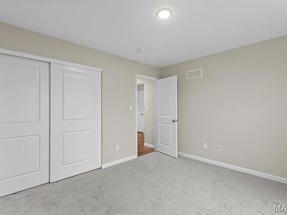 New McBride Homes Maple ranch 3BR, 2BA is READY NOW! This incredible home has a 3-CAR GARAGE, open floor plan with vaulted ceilings, ample living room with a ceiling fan, 6’ windows, & wood laminate flooring in the main living area. The kitchen has Landen Burlap 42” cabinets, large center sq. island with a breakfast bar, quartz countertops, & stainless GE appliances. Enjoy the spacious master suite w/ceiling fan, walkin closet, & private bathroom. It includes a corner garden tub w/window, shower w/seat, dual vanities, & private toilet rm. 2 add’l BRs w/ceiling fan prewires, 2nd full bath, & main floor laundry complete the main level. Upgrades include lighting/plumbing fixtures, 2 panel interior doors & coachlights at the garage. LL also includes a ¾ bath rough-in for future finish. Hawk Ridge offers beautiful new homes in Lake St Louis near restaurants & entertainment! Enjoy peace of mind with McBride Homes’ 10 year builders warranty & incredible customer service! Similar photos shown.
