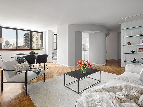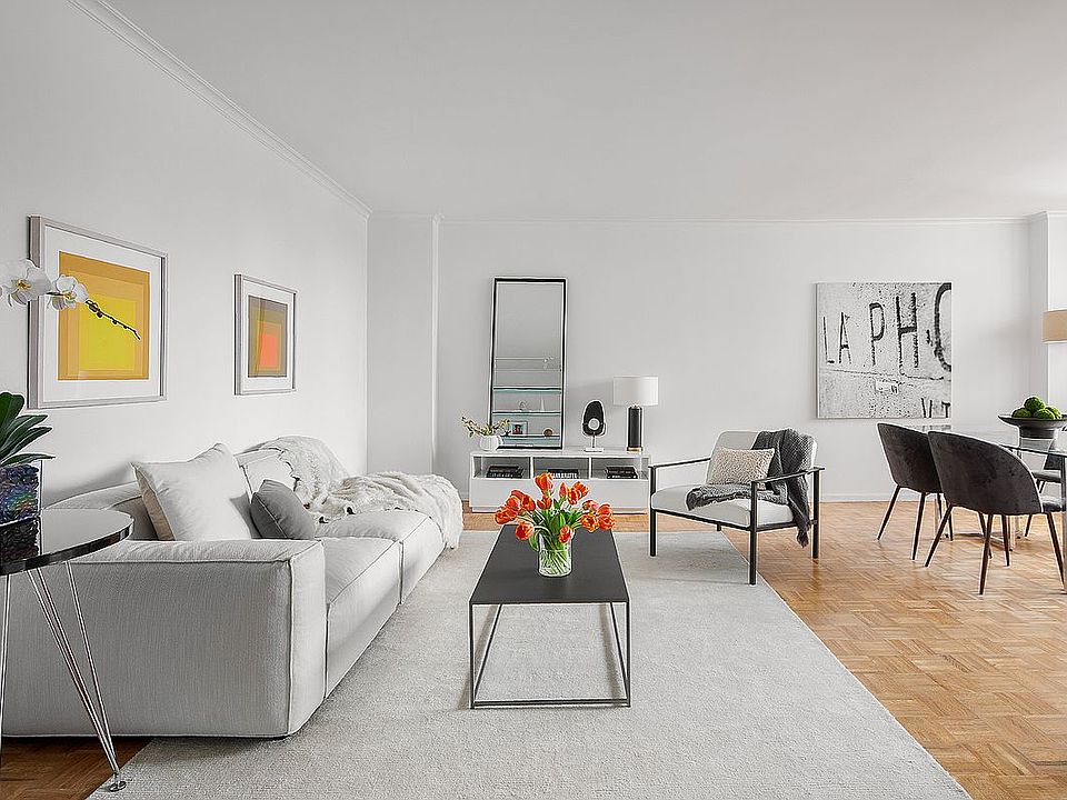 The "C-line" at 280 Park Avenue South has the largest one bedroom square footage and best layout in the building. Apartment #16C, which has been renovated with custom architectural details, truly stands out and offers all day light, open city views and is ultra quiet. Entered through a gracious entry foyer, this home features a substantial living room with plenty of space for relaxing and entertaining, a generous separate dining area and there is also an area that's ideal for working from home. The sunny, windowed kitchen, which is partially open to the living and dining rooms, is beautifully maintained and features granite countertops, modern appliances and plenty of storage.