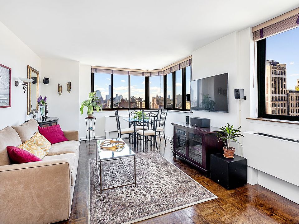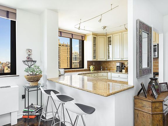 Open the door to 22F and be bathed with natural light from the 12 large bay windows facing south and west, with stunning views you will never get tired of. Watch the Freedom Tower light up like a candle while you have morning coffee and enjoy dinner as the sun sets and puts on a show each evening. The rarely available F line at 280 Park Ave South has the best layout of all the 1/1.5 bedroom units with hardly any wasted space. The open kitchen allows light and air to flow freely and the oversized granite counter allows family and friends to gather around and enjoy the company of the cook as the meal is being prepared. The kitchen offers under-the-counter refrigerator and Subzero freezer and generous amount of wrap-around space. The bedroom offers large south-facing windows. The master bathroom having double-door glass enclosure with the bath doubling as a jacuzzi and both bathrooms are stylishly decorated with stone tiles. The apartment offers an abundant amount of California closet space. One more advantage of this apartment line... it is quiet.