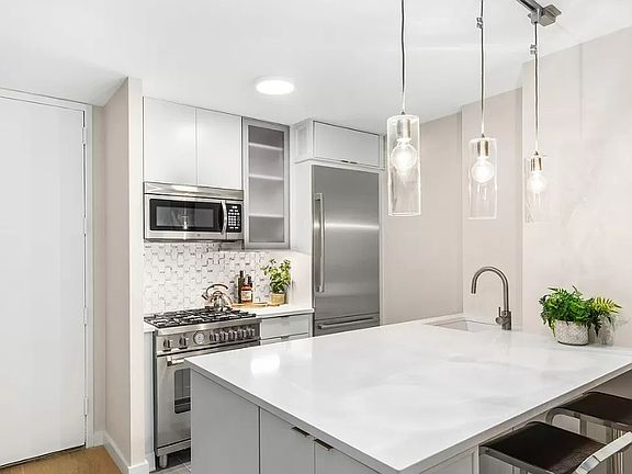 Lease start for EARLY JUNE VIDEO TOUR available upon request! Sunny, quiet, and arguably one of the nicest renovations in all of 280 Park Ave South, 4E is a pristine 1BR/1BA that comes with a coveted in-unit washer and dryer! This alluring South facing condo features Mohawk hardwood Beachwood oak floors throughout along with dimmers for all light fixtures for creating the perfect ambiance. The kitchen is a chef's dream with high-end stainless steel appliances, unbelievable cabinet storage, iconic white countertops and MSI Framework 12 x 13 polished marble with mesh-mounted mosaic tile, and even room for breakfast bar stools. The modern bathroom off the mirrored dressing area features MSI Carrara 12 x 24 polished porcelain tiles and floors. The huge, oversized King-sized bedroom and four large built-out closets in the apartment, make this home one not to be missed! PRIME location with 24 HR grocery store next door, 24HR drug-store in front of the building, 2 dry cleaners & 2 parking garages on the block, & quick access to the 6 (Green) and N/R trains (Yellow). Located in the heart of the Gramercy/Flatiron neighborhood, Madison Square Park, Gramercy Park, Union Sq, Park Avenue restaurants and Flatiron shopping. 280 Park Ave South is a Full Service Doorman Luxury Building, with two massive BRAND NEW roof-decks with 360 degree views of Manhattan and beautiful BRAND NEW outdoor furniture, providing a wonderful respite from any stressful day. Other free amenities include a 40 foot pool, BRAND NEW state of the art 24HR fitness center, his and her sauna & steam rooms, Jacuzzi, and a rear court play garden! Additional storage space available for rent. Laundry in building. Pet friendly. BROKER'S FEE APPLIES. 1YR minimum lease length. Sorry no short-term leases!