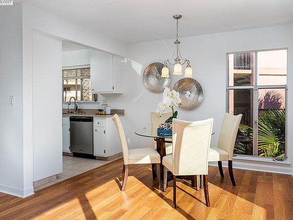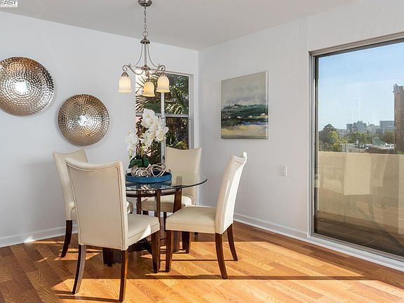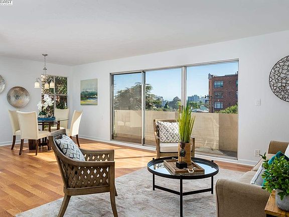 Downsizing or first time home buyer, welcome home. Amazing city views and beautiful sunsets from the private deck await you. Freshly painted, new floors, and updated kitchen. Two spacious bedrooms, plenty of closet space, and large bathrooms and generous living room. Huge storage closet that can fit multiple bikes/items, deeded parking spot, and tons of natural light...don't miss this exceptional value. Located in desirable Adams Pt., walking distance to Lakeshore farmers market, Lake Merritt, shopping, and restaurants. Easy access to both 580 freeway and BART. Parking and Storage space #8.