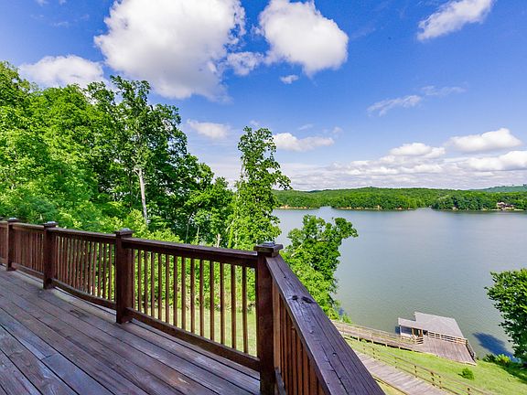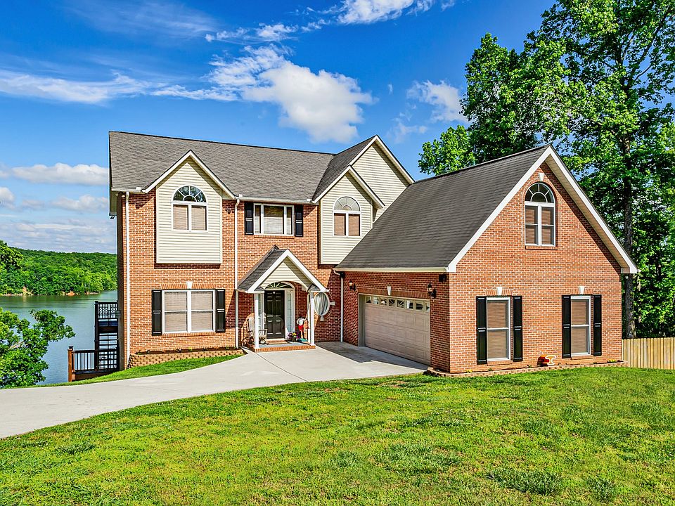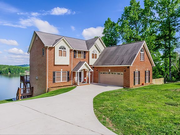 Beautiful main channel all brick home situated on Watts Bar Lake with year round water. Spacious home with spectacular lake views from almost every room. Enjoy the over-sized deck with expansive lake views. Large 2 slip covered dock and boat lift with easy access golf cart trail to dock. Home offers a fully finished walkout basement and wet bar. Ideal for entertaining and extra living space. Main level features newly updated kitchen, hardwood floors, gas fireplace, office. Extras include fenced side yard and security system. Master suite with walk in shower, whirlpool tub and private balcony to enjoy stunning lake views. A must see. Lake Living doesn't get any better in this price range call today!!!