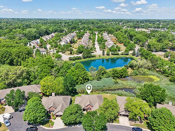 Rare stand-alone ranch in sought-after Lincolnwood Terrace with snow removal and lawn care included! This upscale 2 bedroom, 2 bath home with finished basement and main floor office offers true single-family living with all the benefits of a quiet, beautifully maintained community. Perfectly positioned on one of the best lots in the neighborhood, this home offers incredible, serene views of the pond, wooded area, and natural landscape-your own private retreat. Over 2,000 square feet on the main level plus a finished basement. Enjoy one-level living with soaring ceilings, abundant natural light, and an open, flowing layout perfect for entertaining and day to day living. The welcoming foyer leads to a spacious formal dining room and a large living room with cozy gas fireplace and peaceful views. The well-designed kitchen includes expansive cabinetry and counterspace, a breakfast bar and sunny eat-in nook with direct access to a private deck-complete with an awning for shaded outdoor dining. The split-bedroom floorplan offers privacy, with a generous primary suite featuring a walk-in closet and updated private bath with walk-in shower and soaking tub. The second bedroom and full hall bath are located on the opposite side of the home. A standout main-floor office just off the living room features rich library-style built-ins on two walls. First-floor laundry adds convenience. Downstairs, the finished basement offers even more space with a wet bar, family room and game areas, cedar closet, bath and additional unfinished areas for storage and workshop. Oversized 484 sq ft two-car garage. Enjoy the peaceful sights and sounds of nature from both the expansive deck. Tucked in a secluded cul-de-sac just east of Randall Road near I-90, Metra, Route 20, shopping, dining and more. Truly a rare opportunity!
