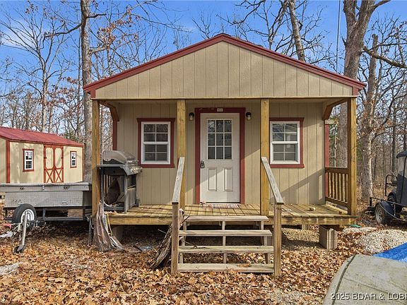 Come see this peaceful 18.67 acres with NO RESTRICTIONS. Gentrly rolling, and heavily wooded at the end of Quantrill Hollow Rd, this large parcel is perfect for hunting or your perfect little hobby farm. 16x36 (including front porch) building/cabin already has Anderson flooring installed, is wired and insulated, and waiting for plumbing and connection to the already installed 1000 gallon septic tank. Water is also hooked up to a frost-free hydrant, and easily connected to the cabin which already has walls partitioned off for a small bedroom, bathroom, and living area. Underground electric already on site with the ability to hook up an RV to both power, sewer and water. Second building is 14x24 and a blank slate to be turned into another cabin or simple storage. The slate is blank and ready for you to make it your own. Most of the furniture is there and ready to be set up to start enjoying the property. Mower, trailers, golf cart available for extra money. There's also a path cut along the property line to give you easy access to the back of the property. Take a look at this great hunting retreat or forever home in a private, buatiful setting. Less than 20 minutes to Camdenton!