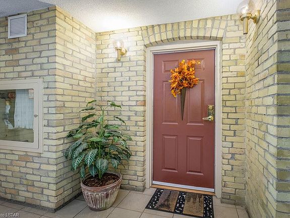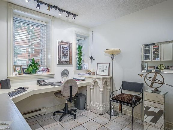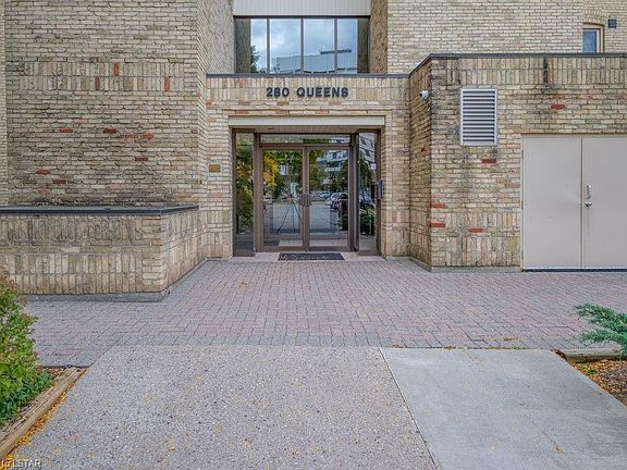 Live in a LONDON LANDMARK - historic and charming Queens Court - in the heart of the city. Built in the early 1900's, the very first apartment building in London, with an award winning condo conversion in the 1980's. Rarely available and UNIQUE main floor condo - one of only 4 of the 16 units with a BALCONY. Don't want to be in a busy apartment tower?? Come check out this quiet, 4 storey building!! Pull up to the door with your purchases - no need for an elevator or long walk!! This intriguing space (almost 1650 sq ft) is sure to impress. QUALITY throughout! Custom crown mouldings, 9' ceilings, original wood burning fireplace with custom mantel, original hardwood floors, European textured walls, cherry cabinets and concrete bar counter in the kitchen, British Breakfront custom cabinet in the living room and custom built-ins in the office. Converted from a 2 bedroom by previous owner - dining room could be converted back to 2nd bedroom. Walk to restaurants, theatres, Victoria Park, Budweiser Gardens and all core amenities. Just a 5 minute drive to both St Josephs and Victoria hospitals. Terrific recreational facilities include indoor pool and hot tub, sauna and exercise room. Amenities include private storage room (#104), guest suite ($35/night) and function room.