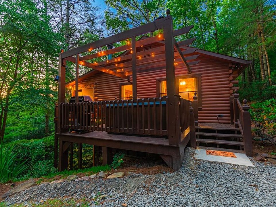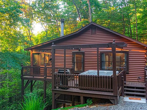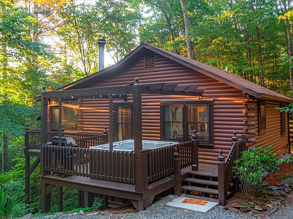 Enjoy the soothing sounds of the cool mountain waters of Briar Creek as you relax in your 2 bedroom and 1 bath professionally styled cabin. This charming log cabin style home offers an open living space that is ideal for relaxation and rejuvenation. The kitchen features new stainless-steel appliances and ample storage. The bedrooms are generously portioned with large closets. The enclosed porch is the perfect spot for savoring the mountain landscape. A lower level game room is ideal for entertaining. Take in the fresh air while you unwind in the hot tub under the stars, or share stories and s'mores around the fire pit. This home is fully furnished with brand new furniture and linens, and a great rental history, so it could be an ideal investment property or vacation home.