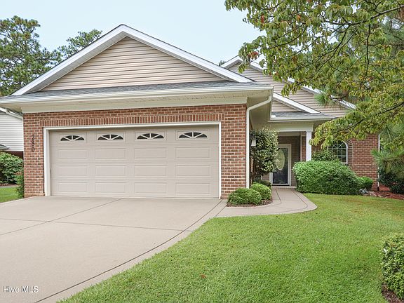 RETIREMENT DREAM! Custom built, one level, brick home on cul-de-sac with 2-car garage in the sought after Pinehurst Trace Community, a 55+ neighborhood. H.O.A. monthly fee includes roof and siding repair/replace, painting, power washing, gutter cleaning, and landscaping, for a worry-free lifestyle. Enjoy social events at The Pinehurst Trace clubhouse, with pool, pickle ball courts, and fitness center. Just 1.2 miles from the Historic Village of Pinehurst with restaurants, pubs, and specialty boutiques. Less than one mile from First Health Hospital, Reid Heart Center, new state of the art Cancer Center and multiple medical offices. Also convenient to resort golf, reservoir trails, and Bradshaw Performing Arts Center. This home boasts an open concept plan with cathedral ceilings, and lots of natural light. The gourmet kitchen has a Palladian window overlooking front garden, Ultracraft 42'' Philadelphia Bisque cabinets with brushed bronze hardware and under cabinet lighting, granite countertops with beige subway backsplash and a stainless-steel double sink with Delta brushed bronze faucet. Enjoy the very spacious master suite with luxury features including Ultracraft Cherry Java cabinets with cultured marble countertop. There is a combined laundry and mud room, and sunny Carolina room overlooking patio and fenced-in backyard. Friendly neighborhood great for walking. Welcome home!