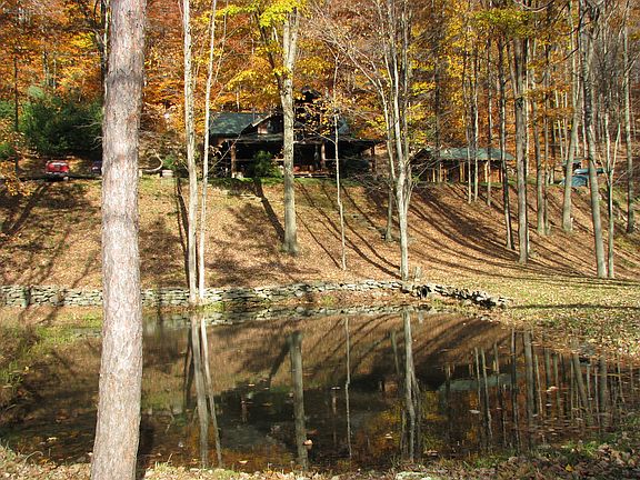 Great views surround this cabin home with two story post and beam construction and cathedral ceilings . Also has balcony porch out of master bedroom. Quiet and secluded yet 10 minutes from a town with Walmart and small airport. There is orchard, pond, two gardens ,well, a spring for water for a 2 Stall , 2 story horse barn , a 20 x30 concrete floor workshop and a rv campsite with stream on the property .Heat source is Monitor M2400 Home Heater, Regency wood stove and wall mount propane heater.Water , 400' deep water well. Also included are the mineral rights!