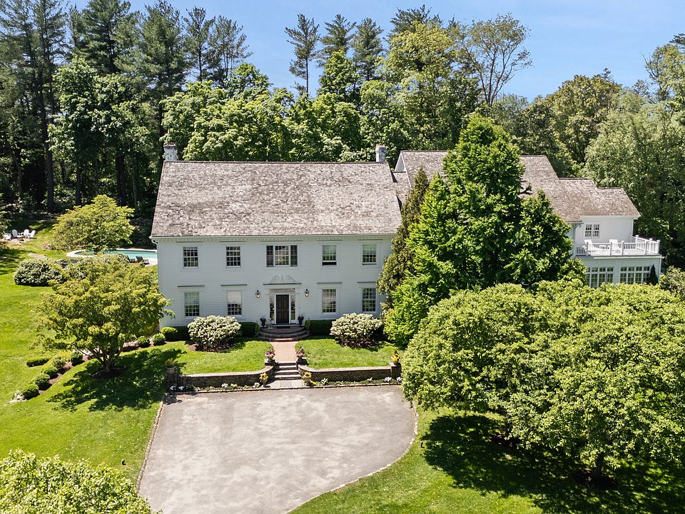 Ideally sited on more than two acres just minutes from town, this timeless and light-filled colonial offers the perfect blend of classic elegance and modern luxury. Graciously scaled rooms begin with an expansive foyer that provides a stunning front-to-back view, setting the tone for the rest of the home. The main residence features a private gym, home theater, custom 1,000-bottle wine cellar, six en suite bedrooms, luxurious primary suite with two full baths and sitting room. The first-floor office, complete with full bath, offers flexibility as a guest suite. Thoughtful amenities include laundry rooms on both the first and second floors, an enviable pantry, and a spacious mudroom. Outside, a gunite pool is perfectly positioned just beyond the expansive terrace, surrounded by mature, professionally designed perennial gardens. Completing the estate is a charming guest house with two bedrooms one ideal as a home office, offering the ultimate in convenience and privacy. There are 2 additional bedrooms, a full bath, living room, dining area and kitchen in the Guest House.