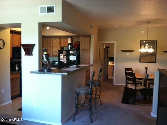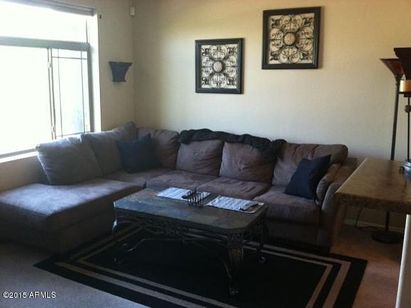 This floorplan with split master suites is one of the most desirable in Villagio and tough to find with completely separated living quarters. Great for students, roomates, or guests. First floor has a bedroom with bath, walk in closet and under stairwell storage with direct access from 2 car garage. Upstairs features great room open to kitchen, breakfast bar, dining room, and another master bedroom with walk in closet and private bath. Nice neutral colors, interior painted approx. 1 year ago. Ceiling fans in greatroom and upstairs master. Walk to Cubs Training Stadium and just minutes from ASU.
