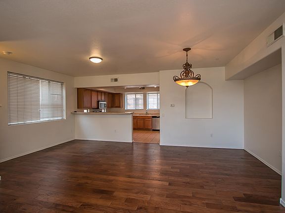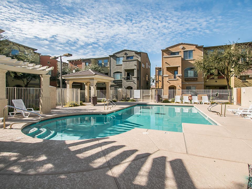 Beautiful 3 story, 4 bedroom, 4 bathroom townhome steps away from pool with two car garage. First floor offers one master bedroom en suite and 2 car garage. Second floor features beautiful dark wood flooring, upgraded fixtures, large open kitchen, huge pantry and half bath. Top floor offers three carpeted bedrooms and two more baths with washer and dryer included. Across from Cubs park, close to freeways, ASU and two large shopping complexes