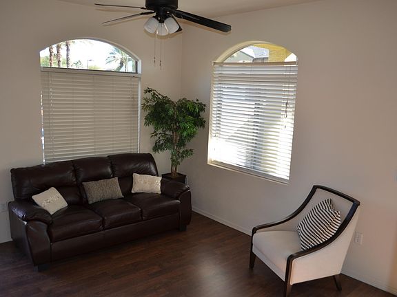 Lovely townhome in Villagio across from Hohokam Park. The large open downstairs greets you with new paint and beautiful wood flooring perfect for all your friends. The kitchen has beautiful maple cabinets with a functional island . 2 Spacious Master bedrooms with their own attached bathrooms and vaulted ceilings. This unit has its own private courtyard with covered patio perfect for entertaining. This is a great location close to the community pool and entrance. This unit is located just across the street from the Chicago Cubs spring training facility and Sloan park. This is the perfect location with all the amenities. Come take a look!