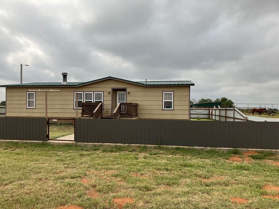 Horse property! 1600 sq ft double wide. 3 bedrooms/2 baths. Nice, fenced yard for your kids/pets. There are two pens with a shared covered shed for your horses. The ~8'x10' well house can be used for tack if needed. There is also a round pen and an arena with chute that is ready for your roping stock! This property is part of an active farm, so the farmer will be in and out from spring through fall, but it will not bother you. He stores his equipment there and also works on it in the barn that's on site. Private water well included: you won't have to worry about if the co-op has water pressure for the day or not. You pay electric through RCEC. You will have to haul your trash off. Located about two miles north of the Greyhound basketball arena.